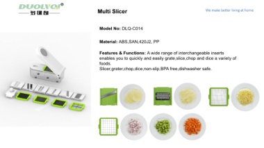 Slicer,grater,chop,dice,non-slip,BPA free,dishwasher safe.
