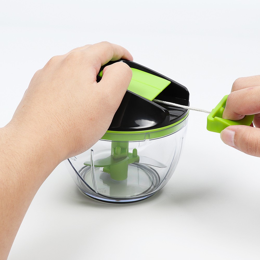 A pull chopper is a manual food chopper that uses a cord or string to chop food. The food is placed in a cup or bowl with the blade at the bottom. The cord or string is then pulled, which rotates the blade and chops the food. The number of times the cord is pulled determines the coarseness of the chop.